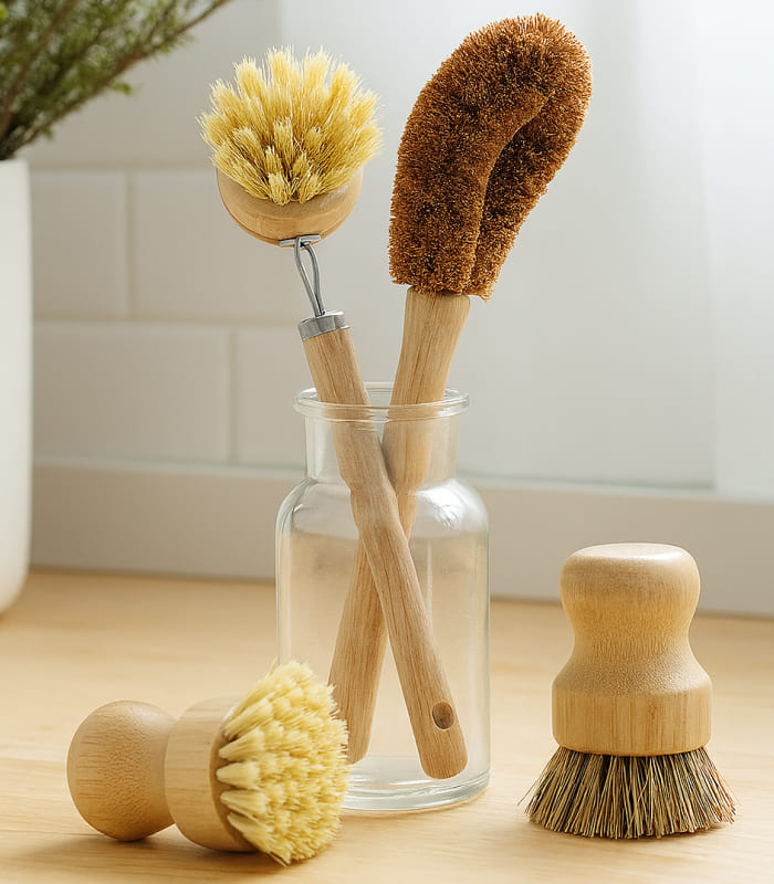 Jede Bürste im Bambox-Set besteht aus nachhaltigem Bambus und natürlichen Pflanzenfasern. Keine synthetischen Materialien, kein Mikroplastik.